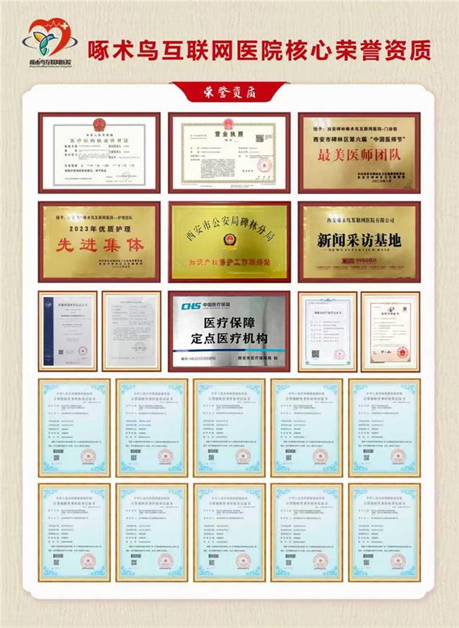 答:西安碑林啄术鸟互联网医院由碑林区卫健委首批批准,持医疗机构执业许可证、信息安全三级备案,是国家高新技术企业和西安市医保定点机构,全部资质可查。